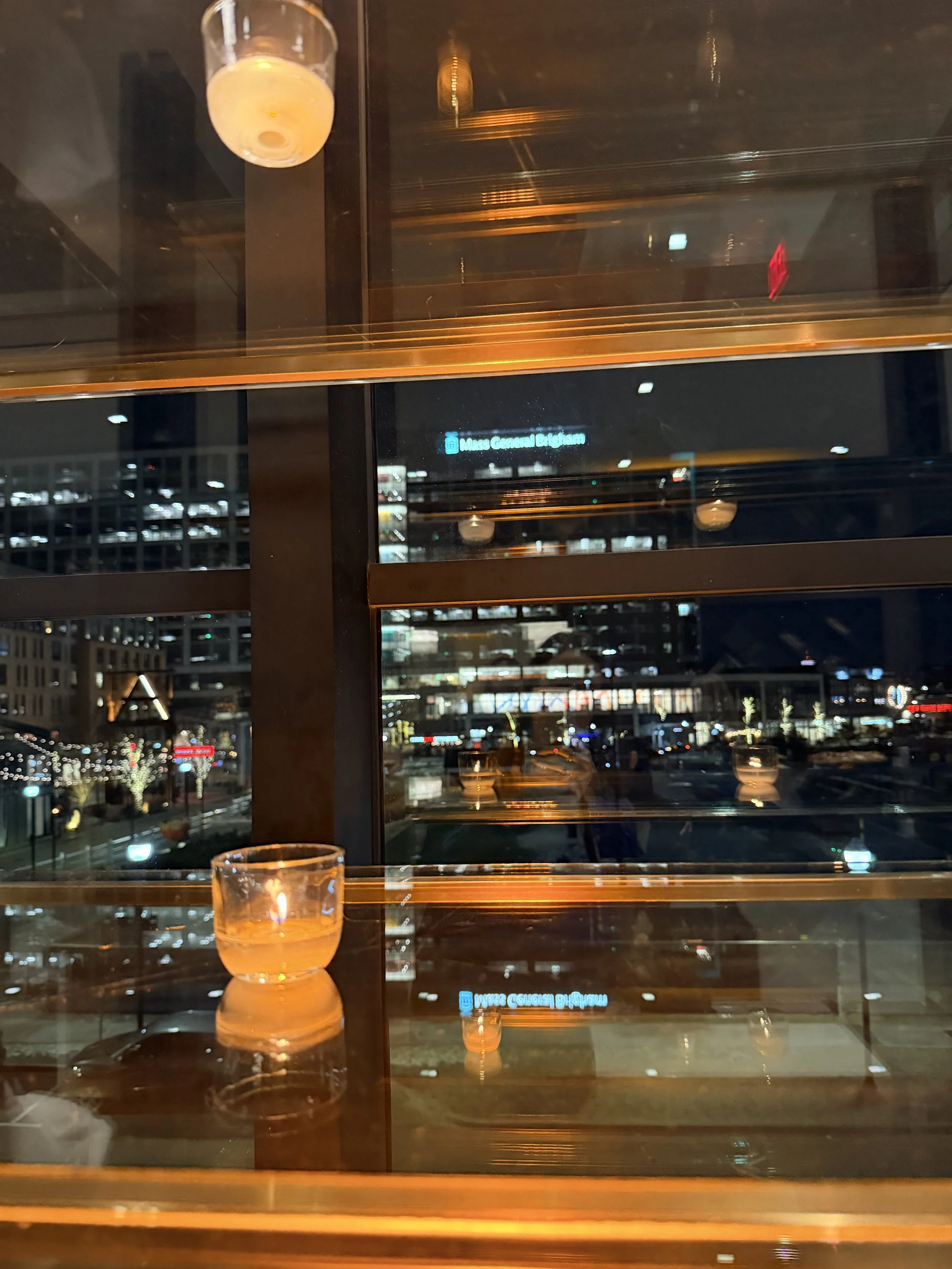 Floor-to-ceiling windows overlooked Somerville—and just beyond, glowing in the night skyline, the unmistakable Mass General sign. A subtle but powerful reminder of the work this team does every day.