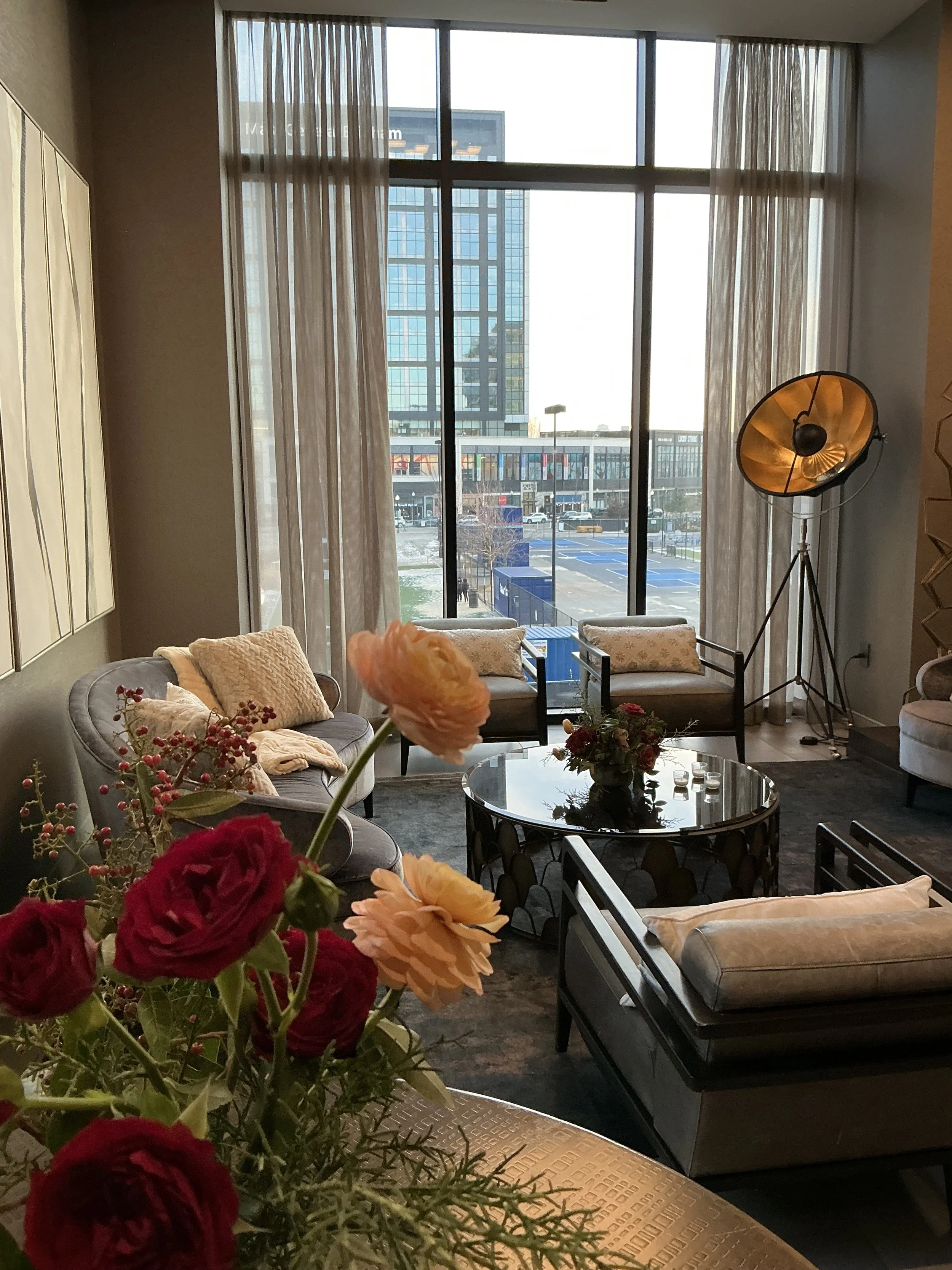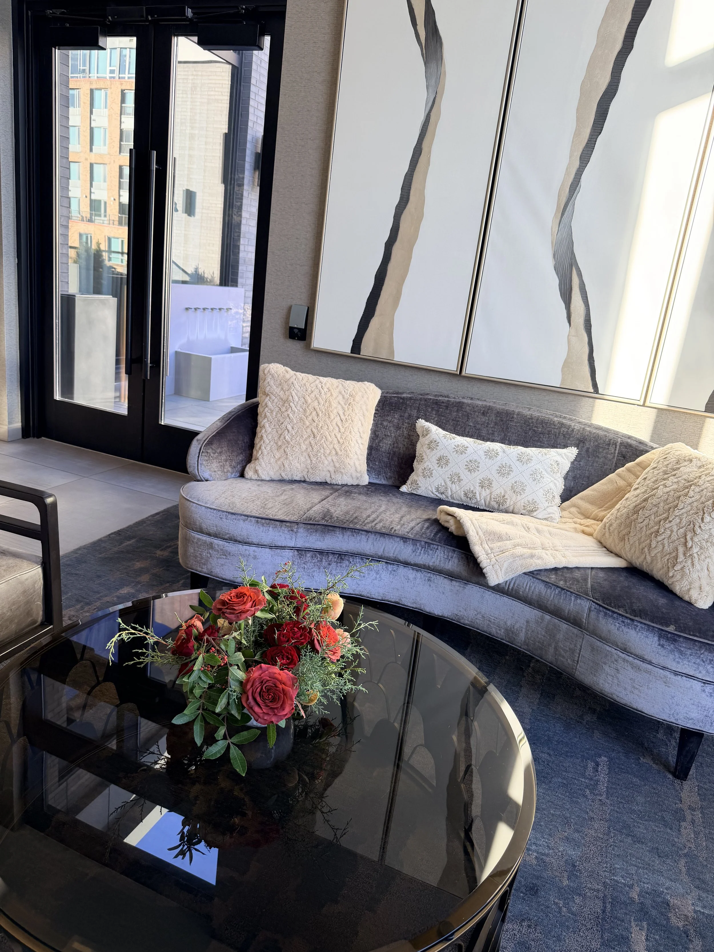 Soft lounge seating, glowing votives, and thoughtfully placed florals brought the entire room together.
