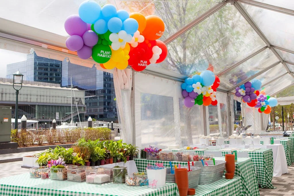 The iconic waterfront at Davio's Northern Italian Steakhouse in Boston’s Seaport District—transformed into a vibrant, tented spring playground.